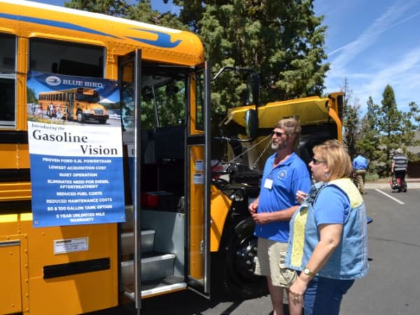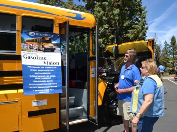 Attendees at the Oregon Pupil Transportation Association (OPTA) 2017 conference check out Blue Bird’s Gasoline Vision Type C school bus. The event was held June 20 to 23 in Bend.