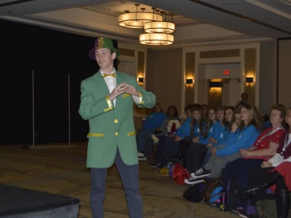 Theater students from Montgomery County (Va.) Public Schools present a Willy Wonka-themed school bus safety play that they performed as part of Love the Bus month in February.