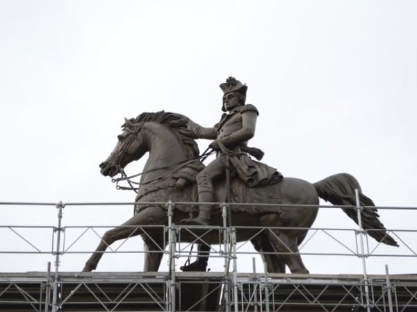 On the grounds of the Virginia State Capitol is a George Washington monument (which is currently surrounded by scaffolding).
