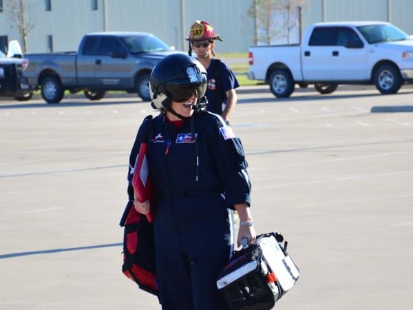 Shown here is the flight nurse who piloted the helicopter.