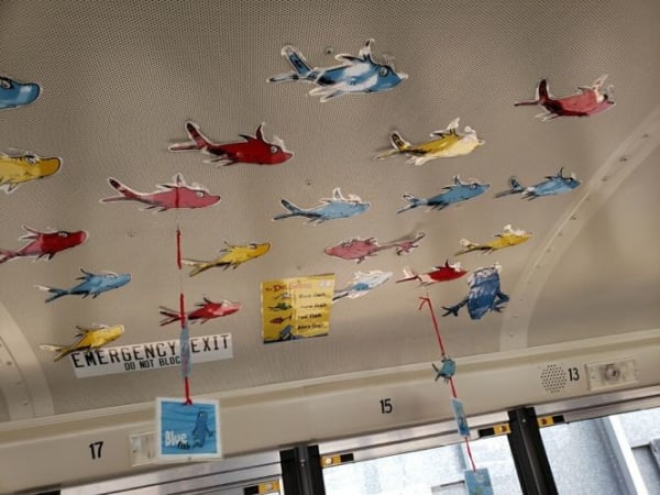 The team added Dr. Seuss book-themed  decorations and poems created by San Antonio ISD students to the inside of the bus. Additionally, the Dr. Seuss story The Lorax was playing through the onboard school bus Wi-Fi.