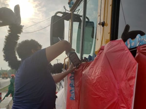 The team added Dr. Seuss book-themed decorations and poems created by San Antonio ISD students to the inside of the bus. Additionally, the Dr. Seuss story The Lorax was playing through the onboard school bus Wi-Fi.