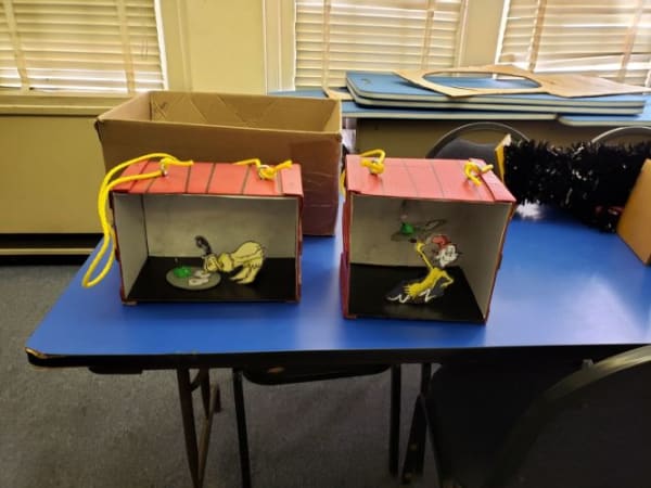 Shadow boxes depicting scenes from the Dr. Suess book Green Eggs and Ham were also displayed.