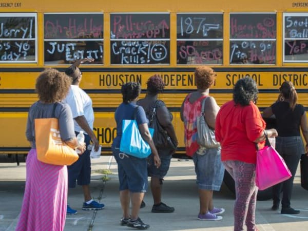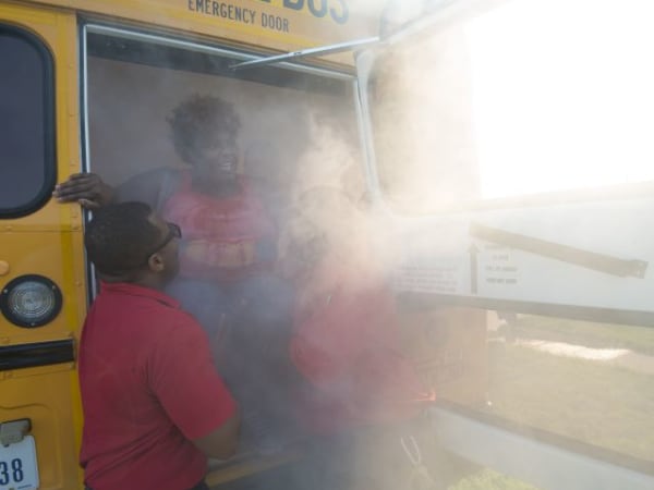 More than 1,100 bus drivers and attendants at Houston Independent School District took part in a back-to-school training program called “Safety Expo.” Hands-on activities included evacuating a school bus on fire (as simulated by a smoke machine).