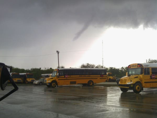This photo of a funnel cloud was snapped by Courtney Harris, a bus driver for Brevard Public Schools in Cocoa, Fla. Susan Savastio, transportation supervisor for the district’s Central Area compound, says that there was a strong line of thunderstorms that came through the entire state around the time that Harris took the photo, but the funnel cloud reportedly did not touch down in the compound. “Mr. Harris was just amazed to see it forming and was very thankful when it went away,” Savastio adds.