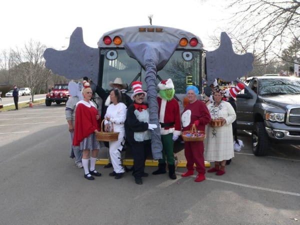 Durham School Services employees at the contractor's McMinnville, Tenn., terminal got into the holiday spirit during a Christmas parade last year. For the Dr. Seuss-themed event, employees dressed up as well-known characters from the author's books, and they decorated the bus as Horton the elephant. Donhua Cantrell, router/dispatcher, says 40 to 50 drivers and their family members worked on decorating the bus. "Not only did we do the bus," Cantrell adds, "we did a sled for Whoville, and we did a toy drive and handed the gifts out to children in need that rode our school buses."