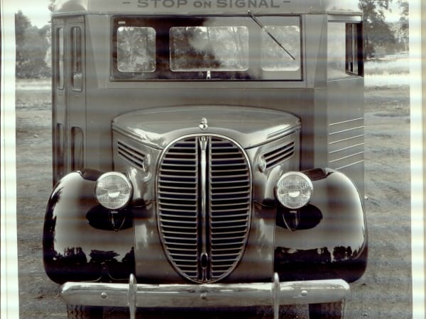 This is a shot of a 1938 Wayne Works All Metal Body model 1010 mounted on a Ford V-8 122 chassis. Optional equipment for the bus included a No. 20 roof ventilating system and No. 54 body width lights.