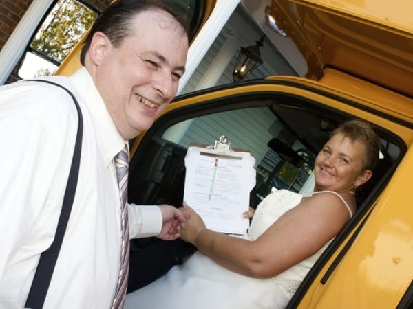It’s safety first for this bride and groom! Scott Thorner, transportation manager for Star and Strand Transportation Inc. in Troy, N.Y., says his wife, Roxann, pre-tripped the bus before their wedding ceremony since one of their drivers was going to bring the bus to the reception. (Roxann is the company’s 19A certified examiner.) “We took a limo to the wedding, but we drove the bus back to our home from the hotel/banquet hall the day after the wedding,” Thorner adds.