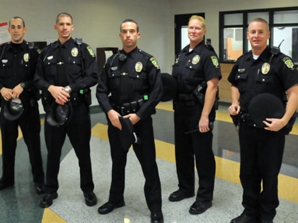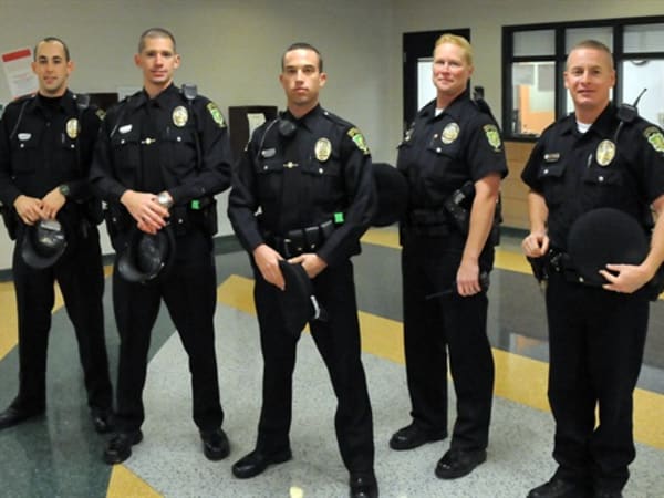 From left: Thomas McCoy, Lee Fletcher, Michael Weaver, Cindy Ackison and Matt Writsel, members of the Grove City Police Department.