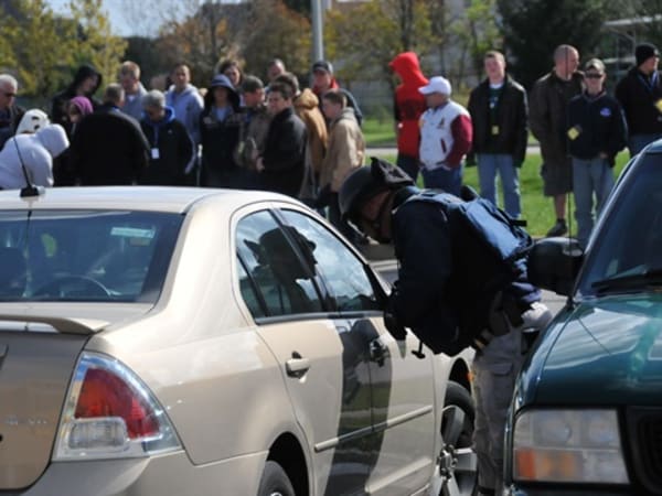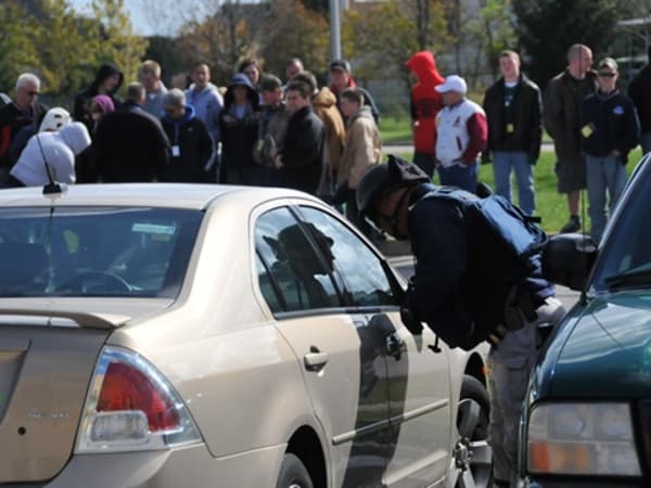 Students had the opportunity to watch the dog, robot and bomb techs as they found the final IED in a car parked in the lot.