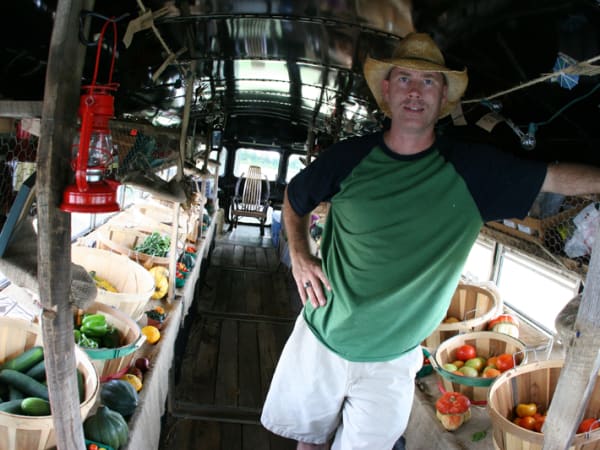 Military veteran Mark Lilly turned this 1987 school bus into a farmers market on wheels. His Farm to Family operation distributes locally grown food to families in urban areas and educates people about food security.
