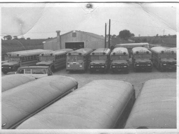 In this shot submitted by Dan Kobussen of Kobussen Buses Ltd. from September 1963, the company's buses are ready for an inspection in front of a maintenance facility.