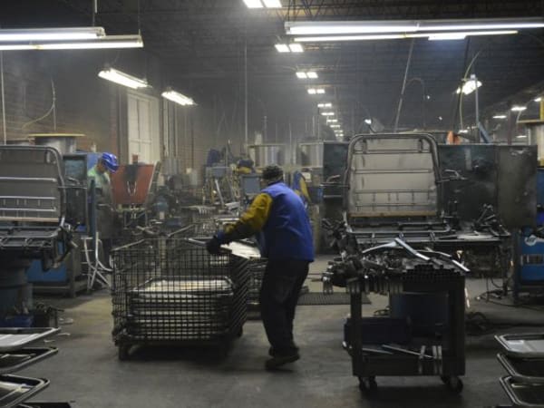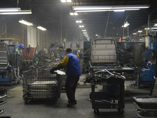At Blue Bird South, the company fabricates the manufacturing materials for its buses: seat frames (pictured here), steps, sheet metal panels, bumpers, etc.