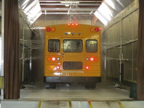 WATER TEST: Collins Bus thoroughly water tests all of its products in a custom water test booth.