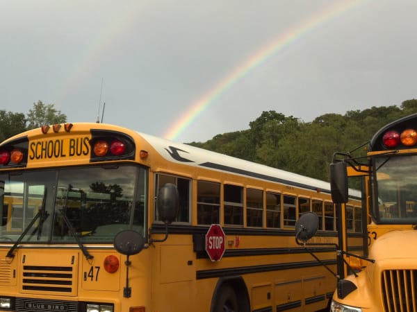 The transportation staff at Campbell (Calif.) Union School District were greeted by this rainbow in the bus yard after a storm. Shot submitted by Chrissie Stevenson.