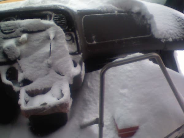 This shot submitted by Tom Knick of Clearview Local Schools in Lorain, Ohio, was taken after a windy snowstorm. He says the wind forced the bus doors open, and this was the result.