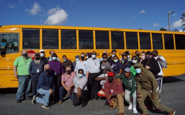 Student transportation leaders in North Carolina's Wake County distributed Bojangle's biscuits and goody bags to school bus drivers at East Cary Middle School in celebration of Love the Bus month.