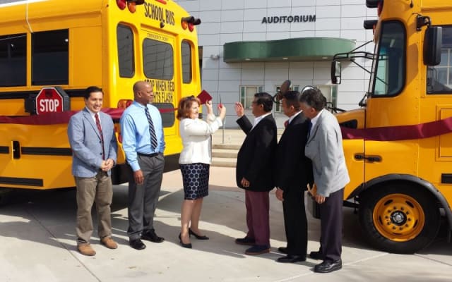 Colton Joint Unified School District marks the delivery of two electric school buses funded in part by state grants.