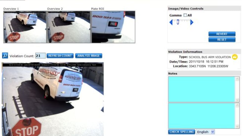 The CrossingGuard School Bus Stop Arm Enforcement System from American Traffic Solutions is designed to monitor traffic around a stopped bus.
