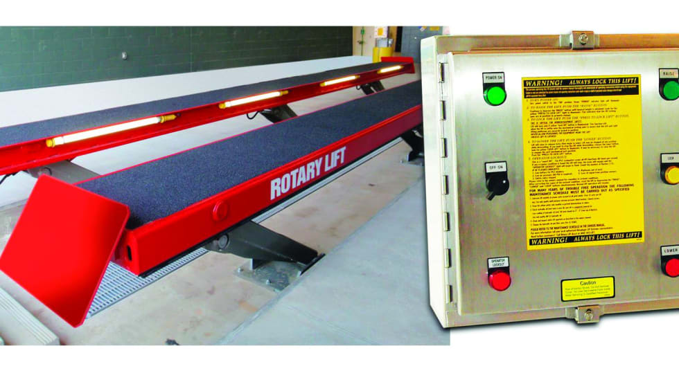 Rotary Lift has updated its parallelogram wash bay lift package to maximize bay space and product life. The new lift with wash bay kit is third-party tested by ETL and ALI certified to meet ANSI safety and performance standards.