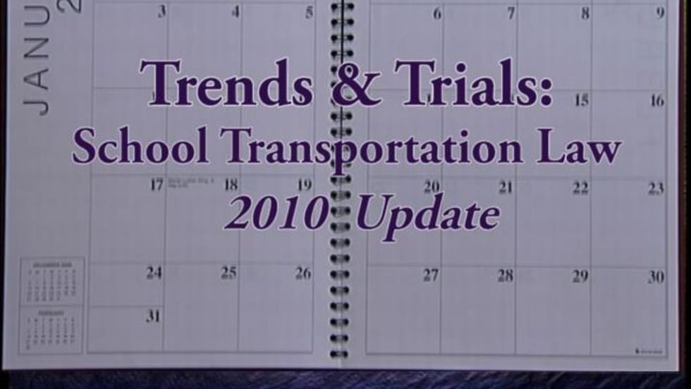 In Trends & Trials: School Transportation Law, 2010 Update, attorney and consultant Peggy Burns explains recent legislative changes and discusses cases about transporting students and employment challenges.