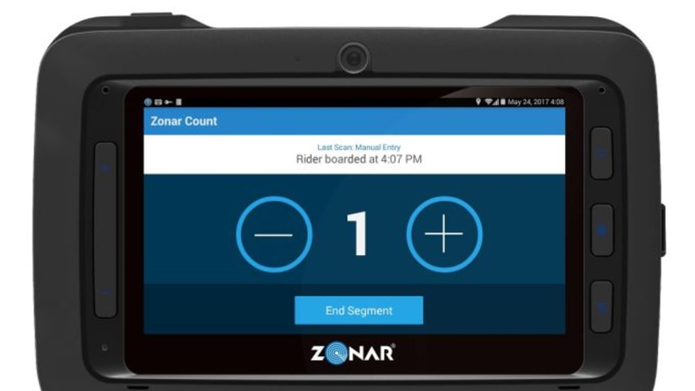 Zonar Count is designed for Zonar tablets to accurately count passengers who get on and off a vehicle while tracking average travel time, average passenger trip length, and operating costs per passenger trip.