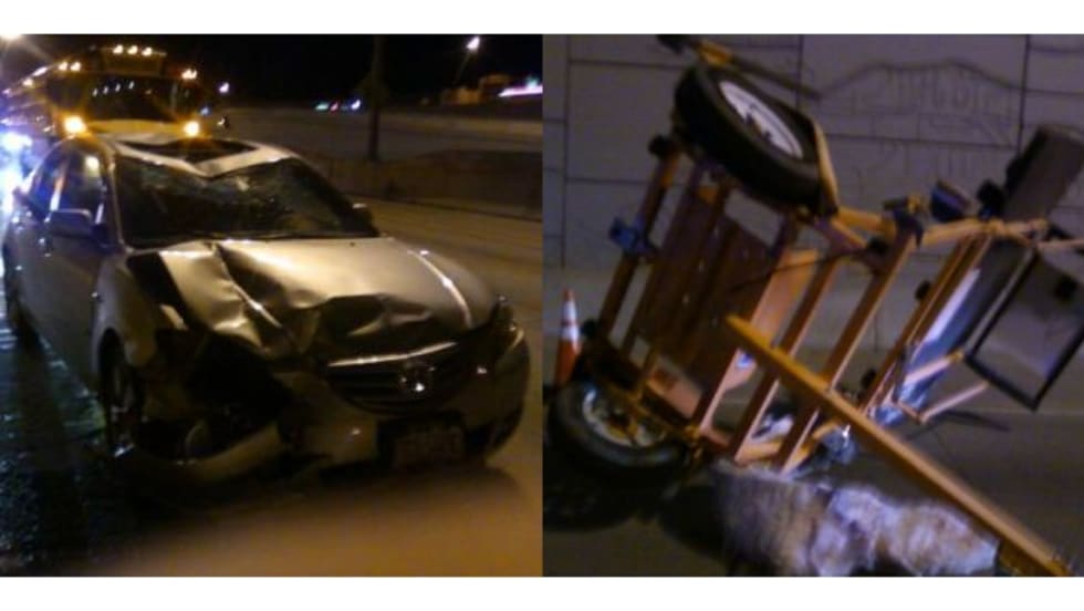 On a night of fierce 60 mph winds, a large sign blew into Doug Hoffacker's car on the freeway. Veteran school bus driver Susan Munoz blocked traffic from the disabled car, contacted emergency personnel and went to check on Hoffacker.