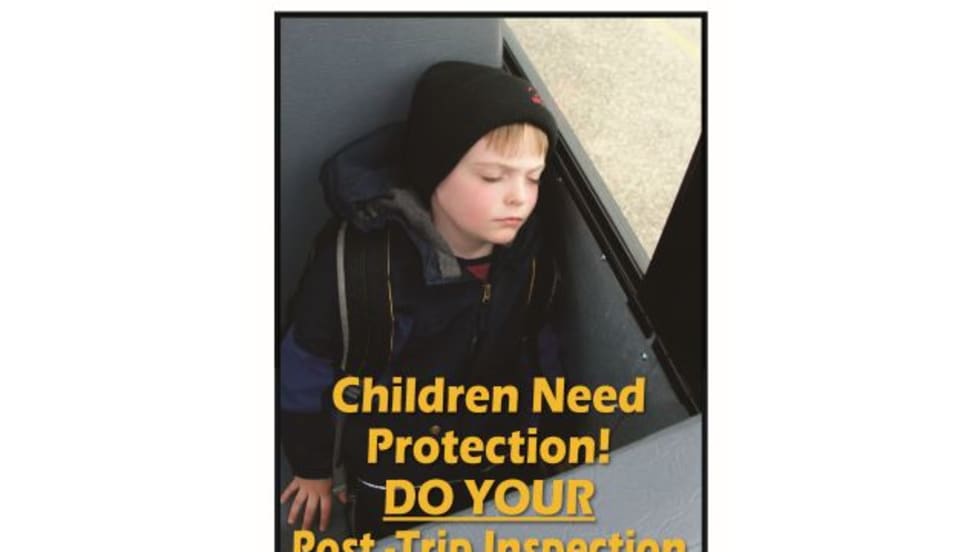 The Minnesota School Bus Operators Association develops a training tool to remind drivers to check their bus for sleeping children. The kit includes nine posters with slogans like “Children Need Protection! Do Your Post-Trip Inspection.”