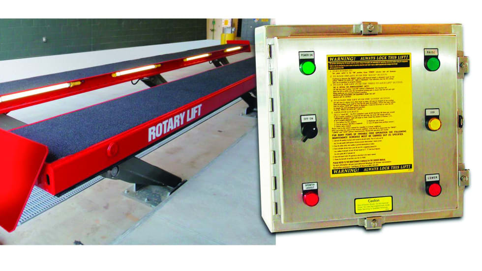 Rotary Lift has updated its parallelogram wash bay lift package to maximize bay space and product life. The new lift with wash bay kit is third-party tested by ETL and ALI certified to meet ANSI safety and performance standards.
