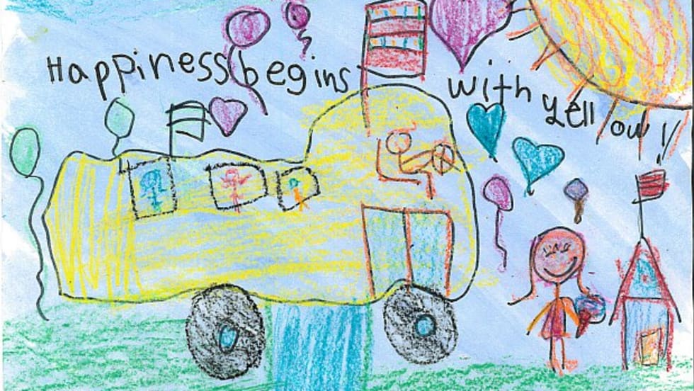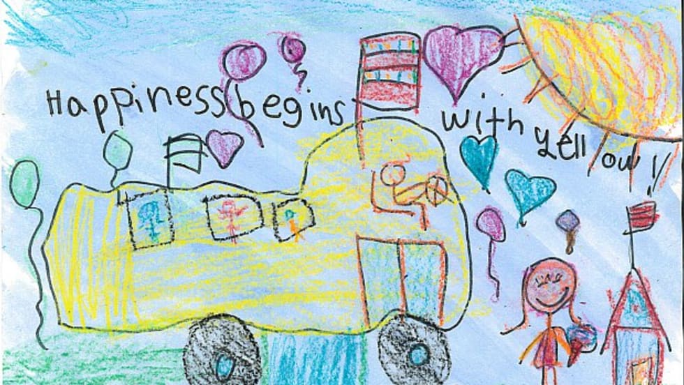 The latest winning entry comes from second grader Ruby Boula of Temescal Valley Elementary School. The bus company awards her school $1,000 for classroom supplies.