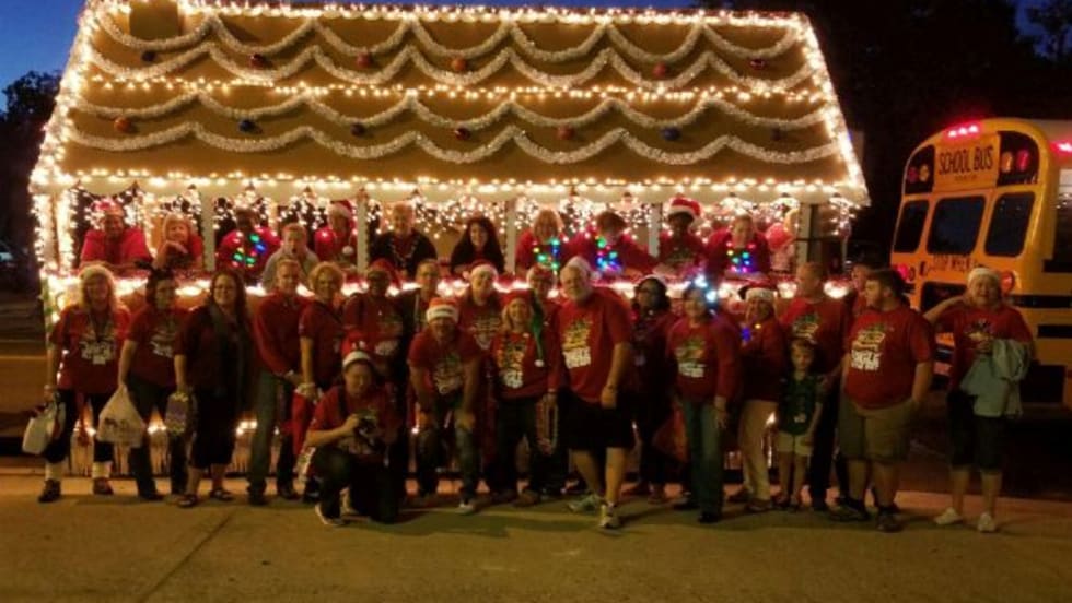 Hillsborough County Public Schools crafted a gingerbread "mobile home" — towed by a school bus, no less — for a local Christmas parade.