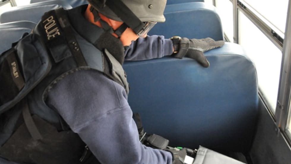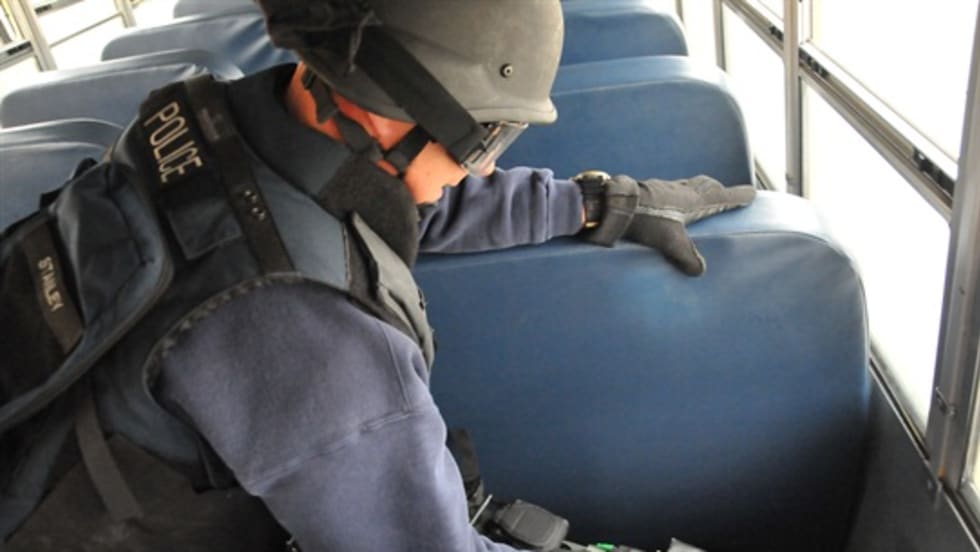 School bus drivers and attendants at Houston Independent School District this year are undergoing counter-terrorism training, which includes a mock disaster drill. The event involves an older bus turned on its side and staged injuries, allowing the staff members to practice their first aid training.