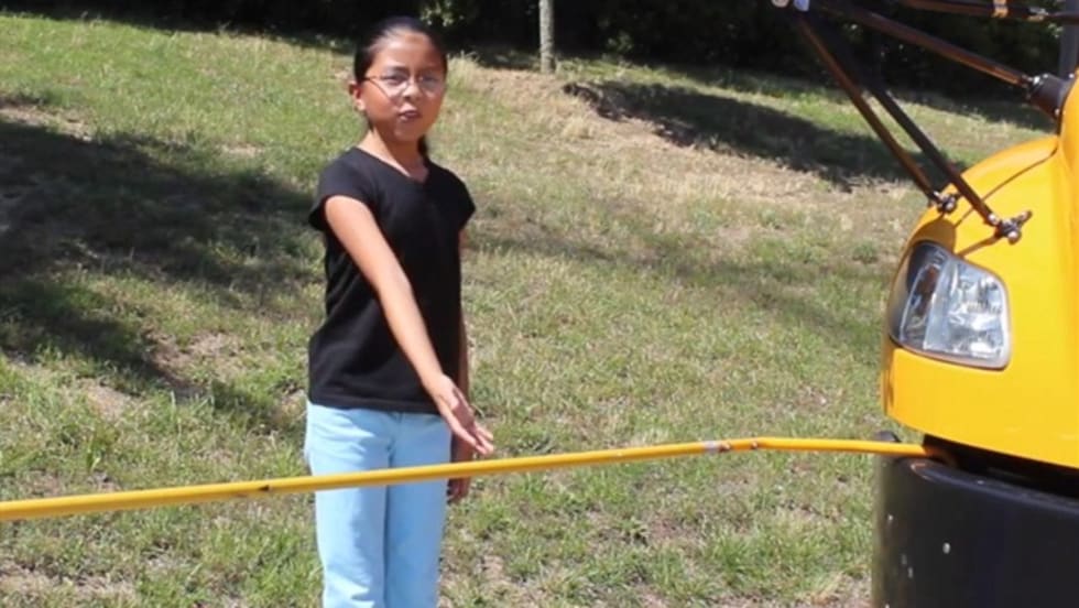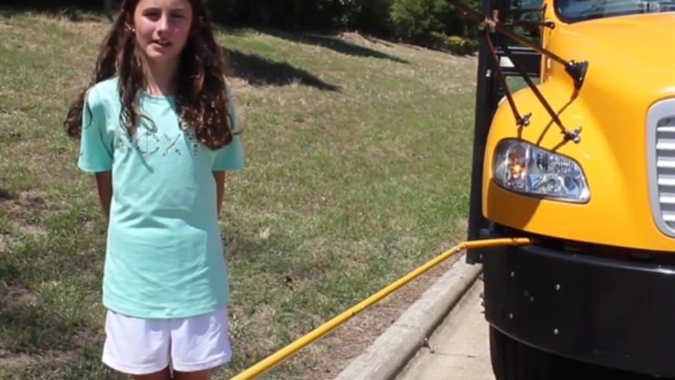 Wake County Public School System students and their bus driver explain the district's new procedure for boarding the school bus. This video, one of three that cover the information, shows a new switch the driver will use.