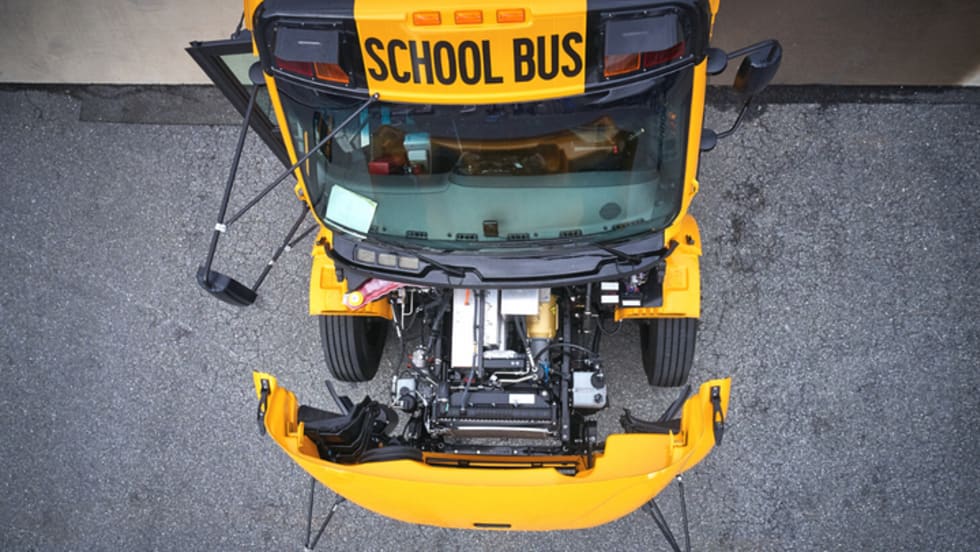 The Saf-T-Liner C2 Jouley, powered by Proterra, joins other zero-emission buses in an Indiana school bus fleet.