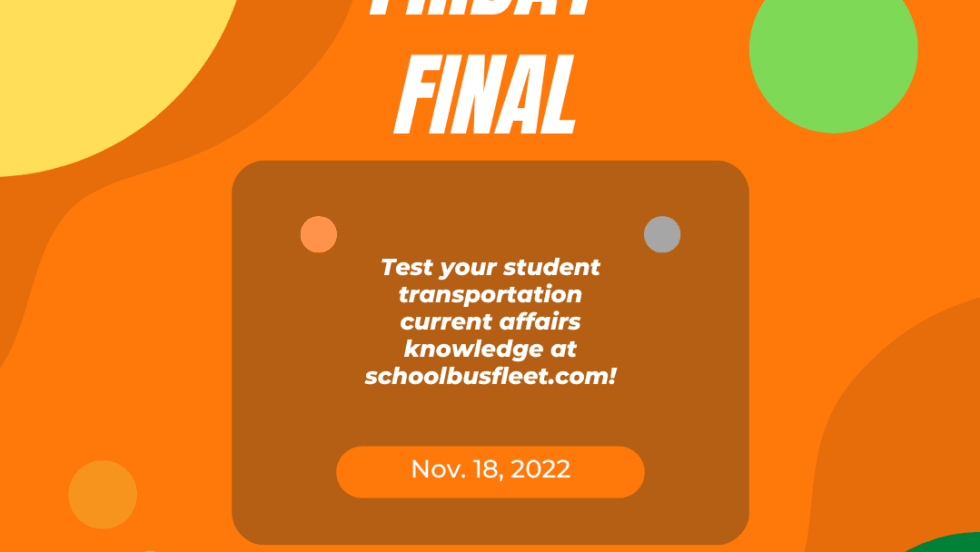 How close are you paying attention to the vital school transportation news that shows up here at School Bus Fleet? See if you can answer all questions in this quiz. Feel free to send those answers to info@schoolbusfleet.com.