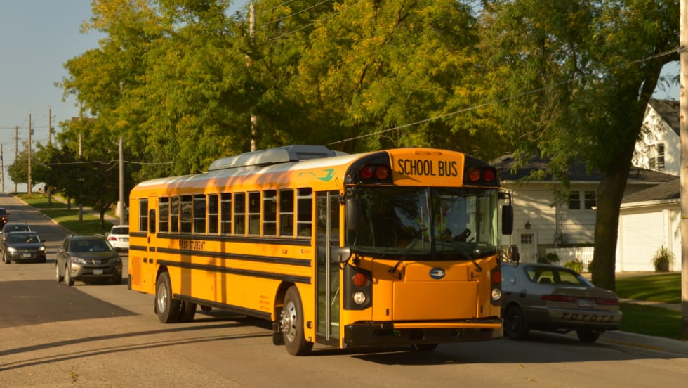 The school transportation company's fleet currently includes 230 electric school buses, which carry about 800,000 students on routes to school.