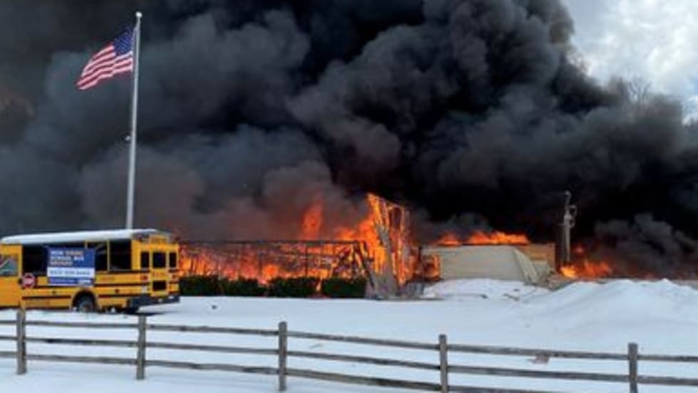 The blast that badly wounded two employees at the Student Transportation of America facility in Bradford was caused by a propane vapor cloud escaping from a bus, according to the fire marshal.