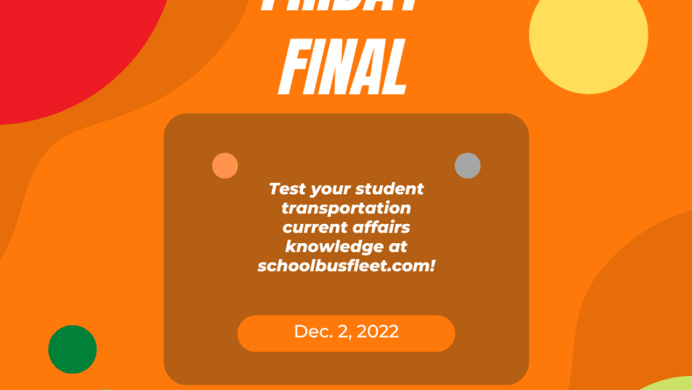 How close are you paying attention to the vital school transportation news that shows up here at School Bus Fleet? See if you can answer all questions in this quiz. Feel free to send those answers to info@schoolbusfleet.com.