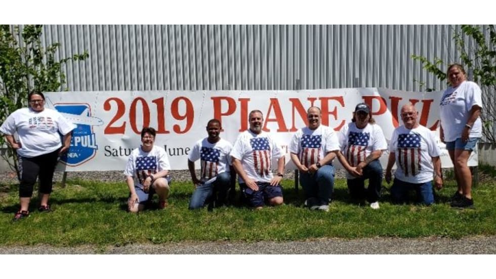Hudson Bus Lines teams up with the Travis Mills Foundation on a “Plane Pull” event to raise the funds for a retreat for veterans and their families.