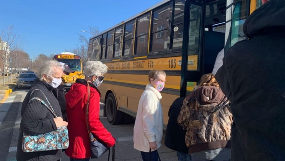 North Kansas City Schools partners with a local coalition to transport 80 senior citizens to get their coronavirus vaccines.