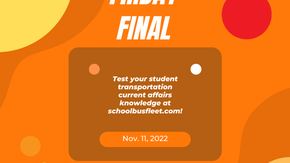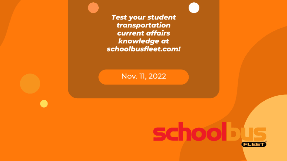 How close are you paying attention to the vital school transportation news that shows up here at School Bus Fleet? See if you can answer all 10 questions in this quiz. Feel free to send those answers to info@schoolbusfleet.com.