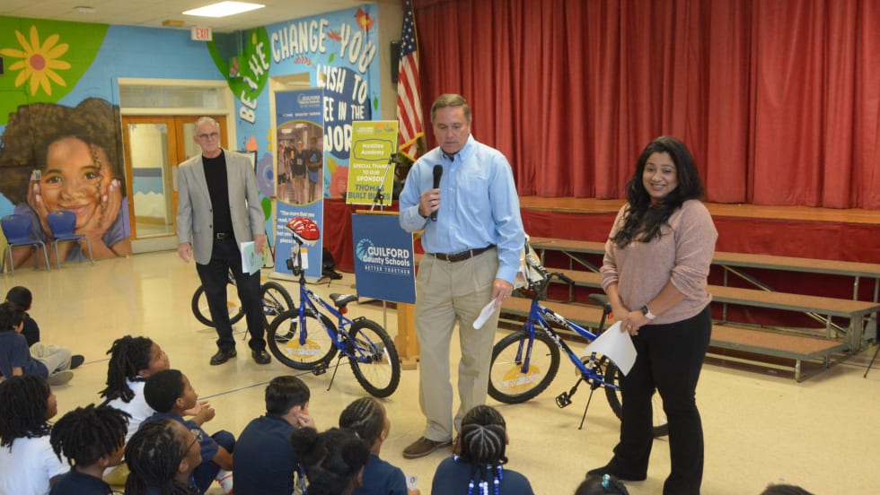 The school bus manufacturer donated about $50,000 worth of bicycles and safety gear to the Bikes for Kids Foundation, specifically for students at two North Carolina schools.