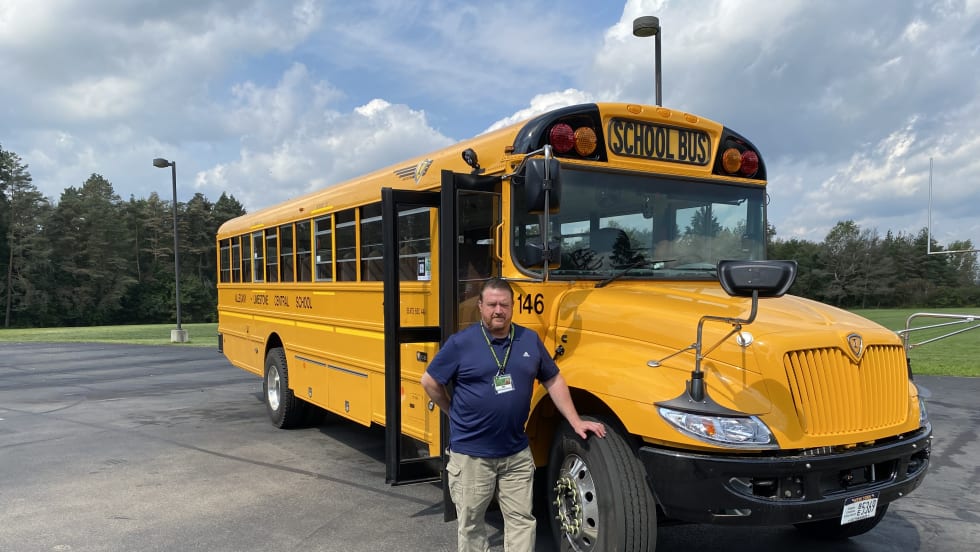 Allegany‐Limestone Central School District purchases four new buses equipped with collision mitigation and electronic stability control systems and Wi-Fi.