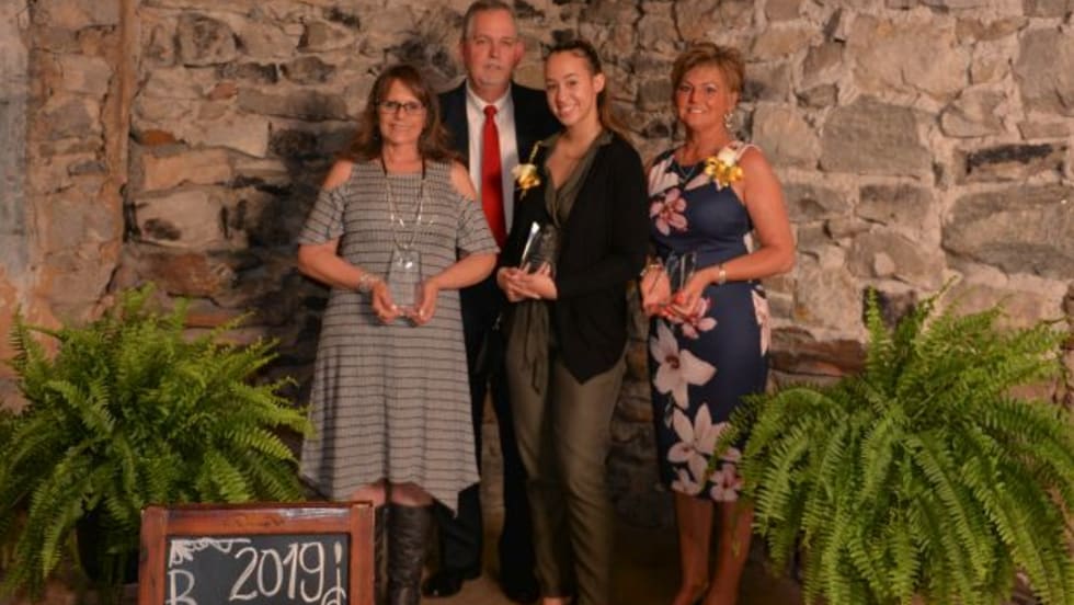Gwinnett County (Ga.) Public Schools presents awards to Special-Needs Bus Manager Julie Peterson and Special-Needs Bus Monitor Hannah Robinson. Also recognized are a general education driver and a fleet technician.
