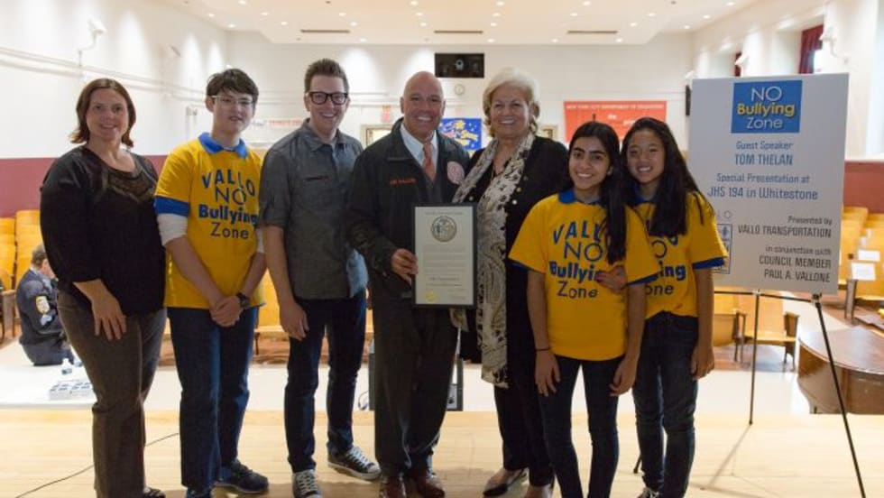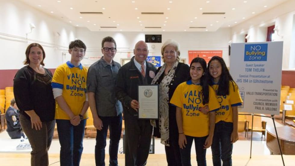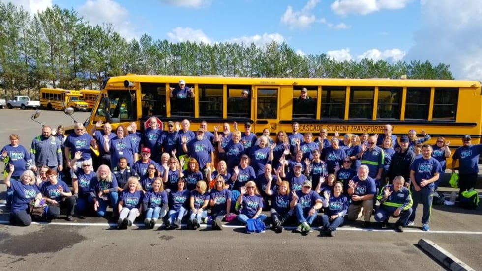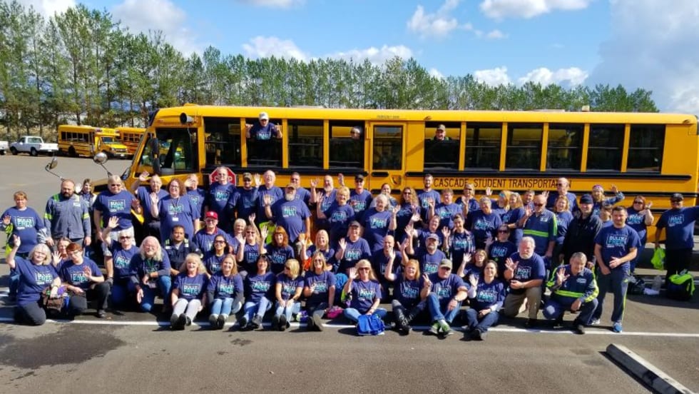 The school bus company’s “Bully-Free Buses” campaign starts with Blue Shirt Day. Employees wear blue shirts in a show of solidarity against bullying.