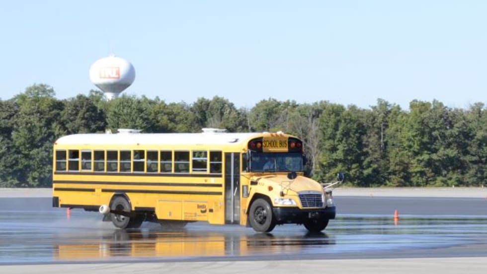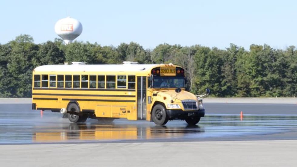 A thrilling test ride on a school bus showed how ESC technology can help the driver maintain control on slippery surfaces and sharp turns.