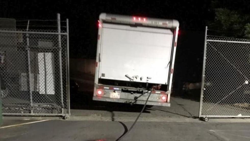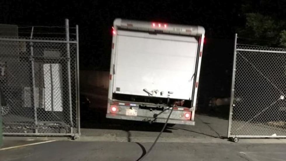 A custodian arrives at the Novato (Calif.) USD bus yard late at night and spots two people syphoning gasoline from storage tanks. He snaps photos as the pair flees in a box van.