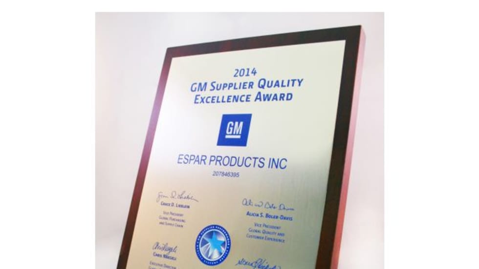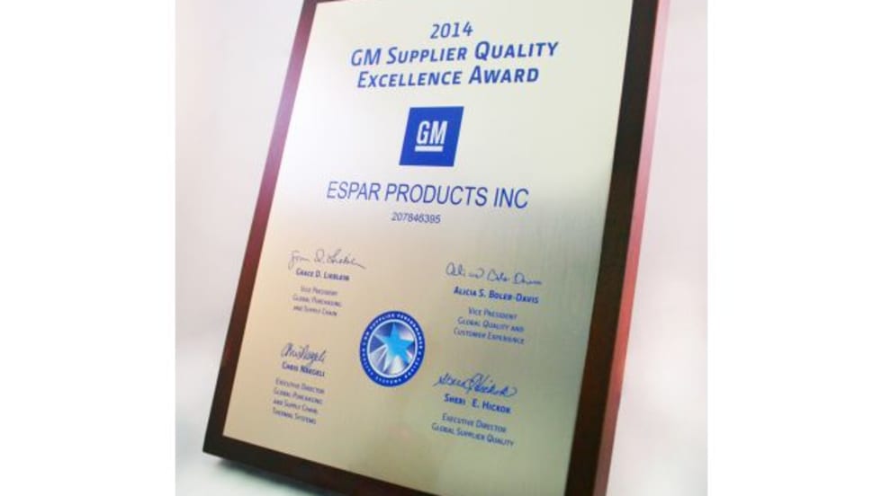Espar Heater Systems receives the Daimler 2013 Masters of Quality award and the GM 2014 Supplier Quality Excellence award in recognition of its quality excellence, on-time delivery, added value and customer service.