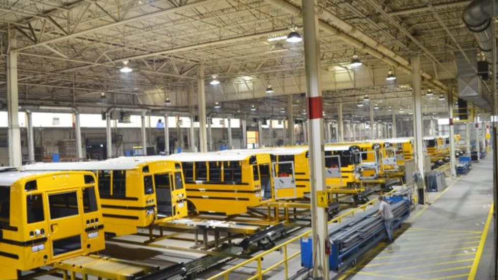 The school bus OEM will add energy-efficient heating systems and LED lighting in its offices and manufacturing facilities.