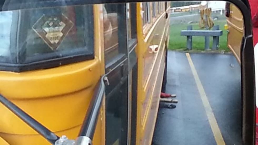 The prop arms can be placed around school buses to encourage drivers to look closely for, as an example, a child bending down to pick up a dropped item.